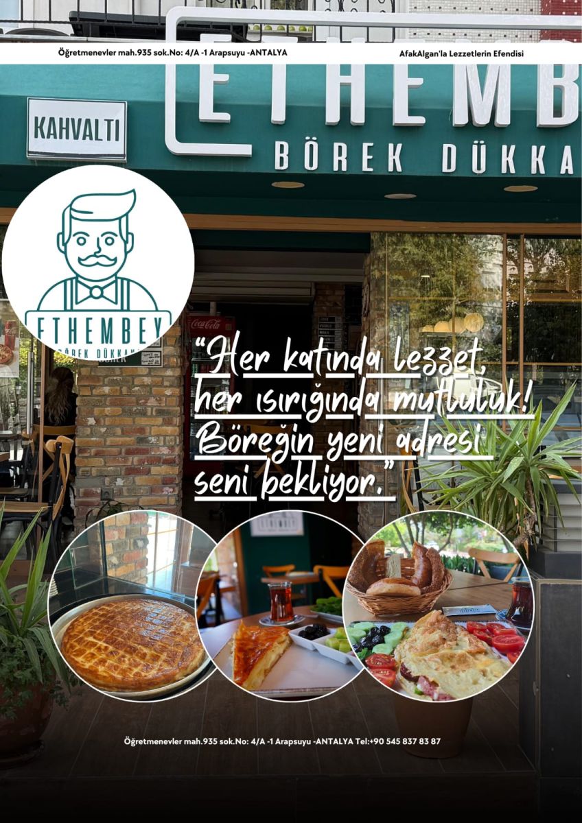Aynı zamanda doğum günleri ve özel kutlamalar için de tercih edilen Ethembey Börek, Antalyalıların huzur bulduğu samimi bir buluşma noktası haline gelmiş durumda.